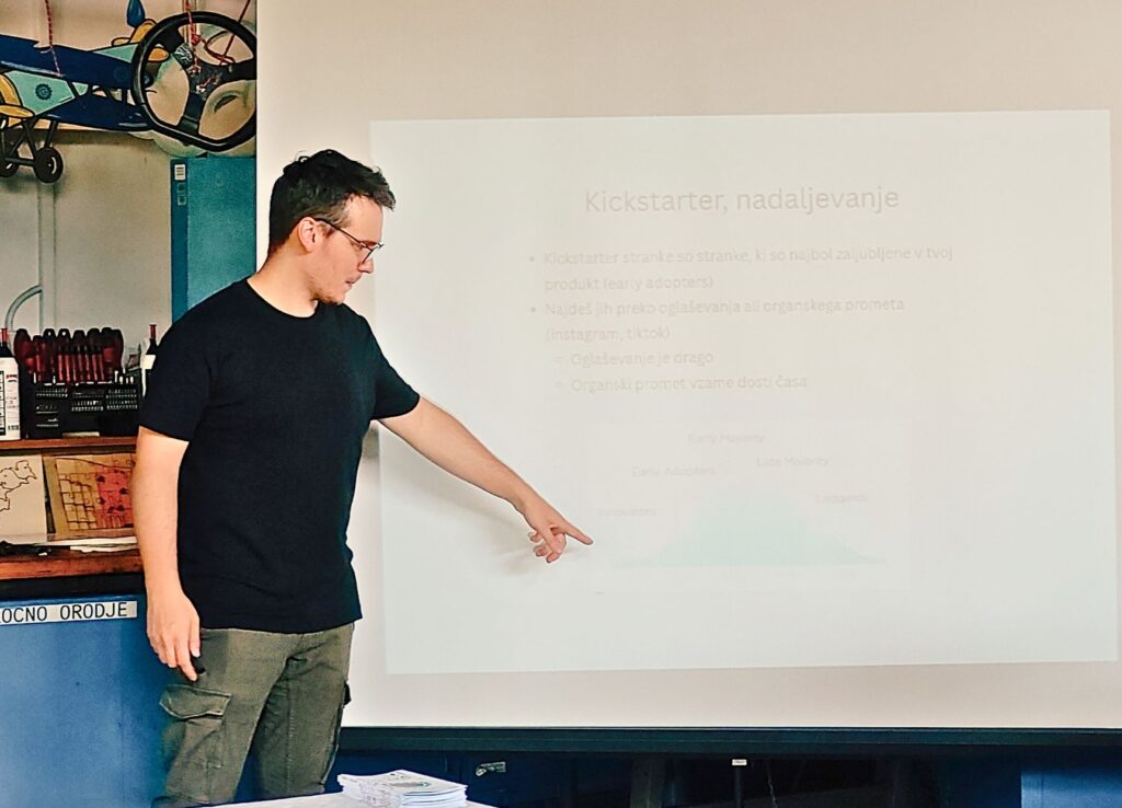 Kristjan nas je popeljal skozi celoten razvojni proces: od začetne ideje, raziskave trga, oblikovanja prototipa, do priprave na Kickstarter kampanjo – spletno platformo, ki omogoča zbiranje sredstev od podpornikov po vsem svetu.