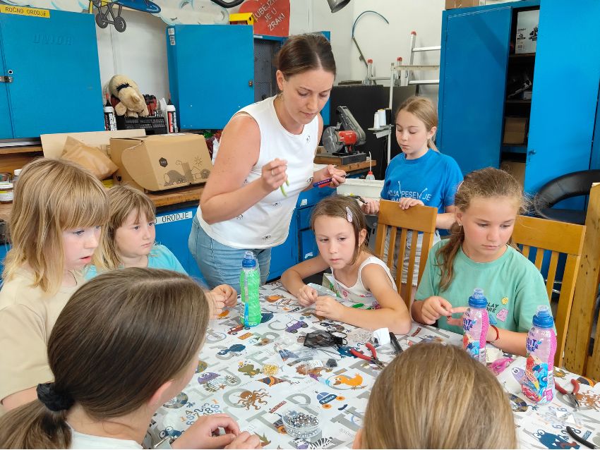 V sklopu poletnega počitniškega varstva v Garaži je Zavod BETA izvedel dve delavnici ročne izdelave nakita iz medenine. Delavnici sta potekali v okviru projekta Garaža za dekleta – STEM prihodnost se začne tukaj, katerega cilj je približati tehnične in naravoslovne poklice tudi dekletom – na zanimiv, dostopen in praktičen način.