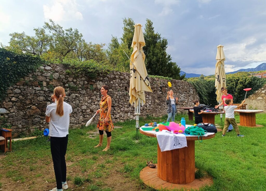 Delavnica je vrata odprla otrokom, mladim in odraslim, ki so se skupaj podali v svet cirkuških spretnosti. Obiskovalci so najprej spoznali osnove žongliranja z žogicami in rutkami, nato pa raziskovali še druge rekvizite – od rožnih palic in poi-jev do kitajskih krožnikov in diabola. V sproščenem vzdušju so se učili drug od drugega ter dokazali, da cirkuška umetnost resnično povezuje ljudi vseh starosti.
