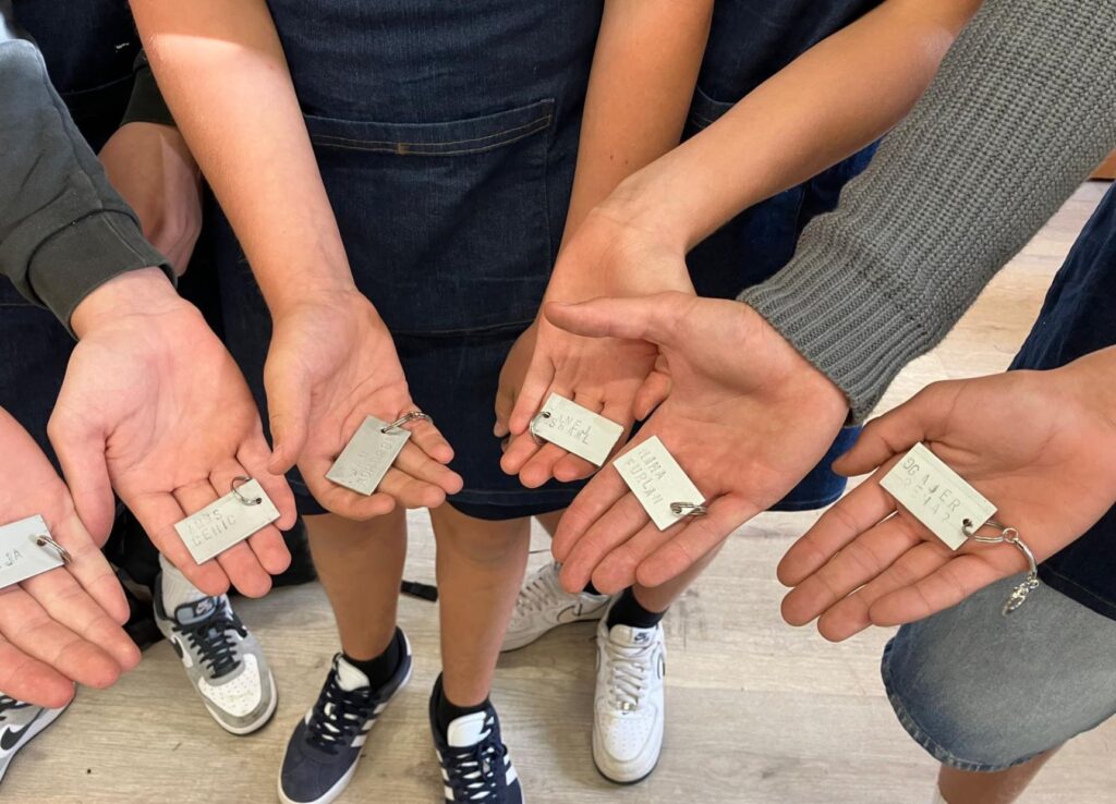 - Oblikovalec kovin – prof. Marko Bratina in dijak Blaž Bratina (TŠC Postojna), skupaj z učiteljem Iztokom Martiničem, učiteljico go. Harej ter dijakom Leom Černigojem, so učencem pomagali izdelati kovinske obeske z vtisnjenimi inicialkami ali simboli.