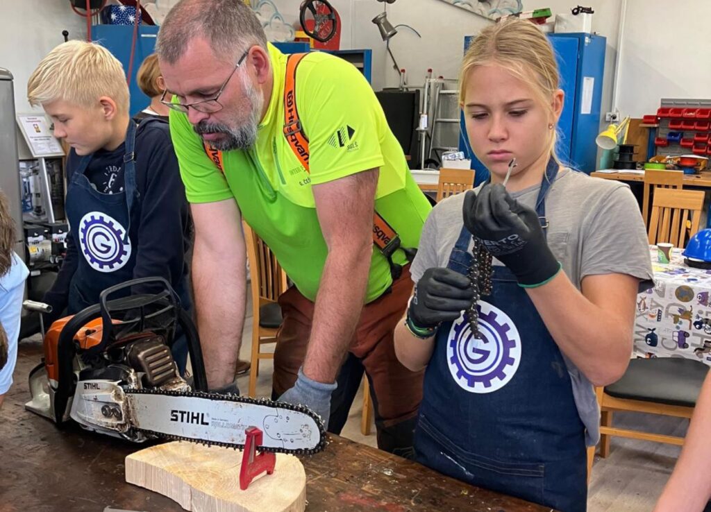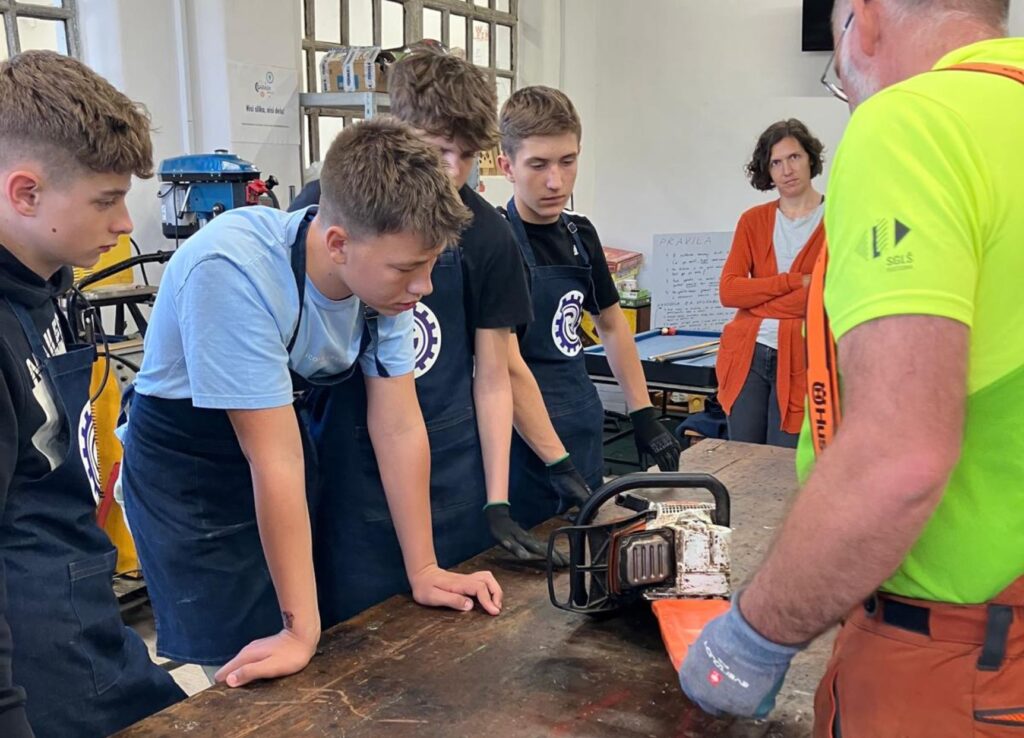 - Gozdar – učitelj Gregor Češarek (SGLŠ Postojna) je učencem predstavil pomen pogozdovanja, pravilne sečnje in uporabe motorne žage ter jih seznanil s praktičnim vzdrževanjem gozdarske opreme.