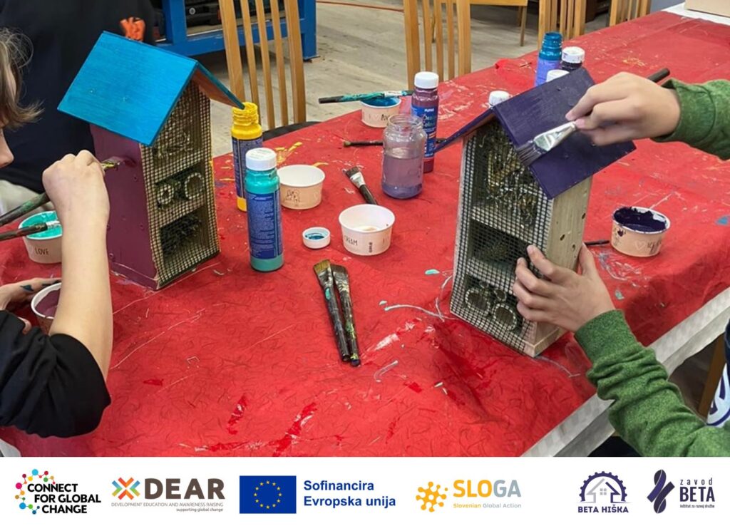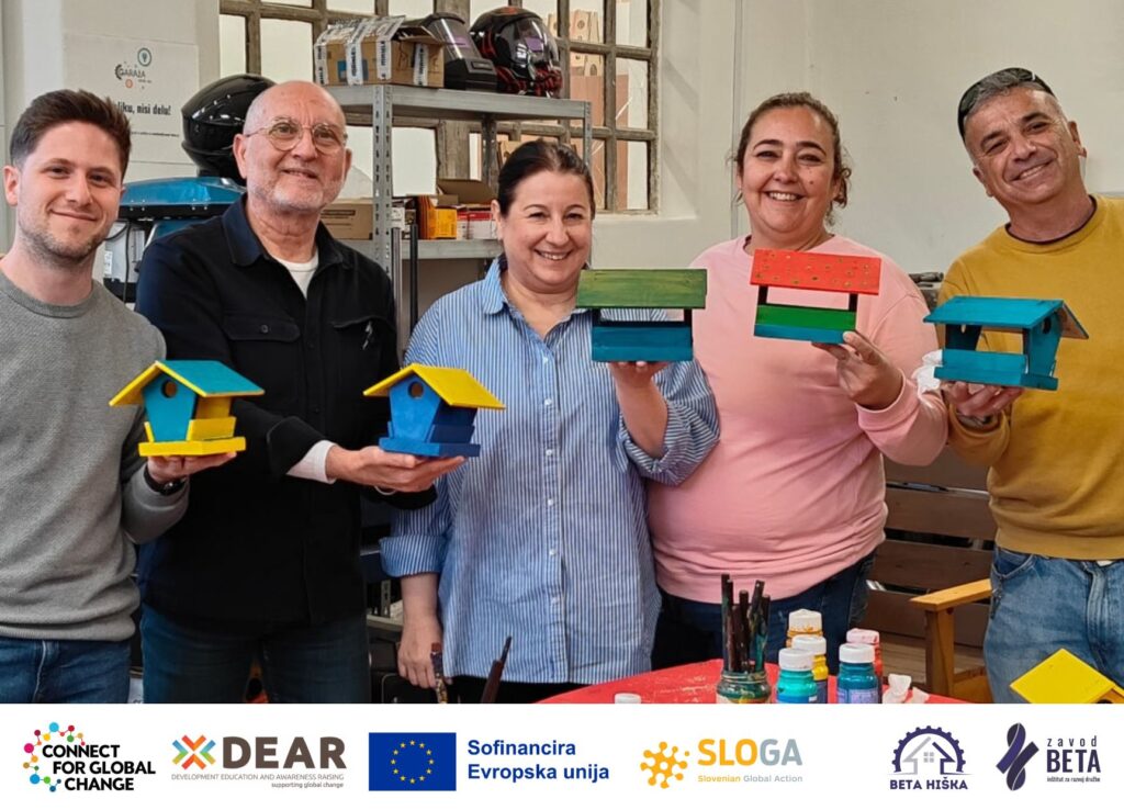 Mladi iz Španije, ki sodelujejo v Erasmus+ programu, so izdelali ptičje krmilnice iz odsluženih palet. Delavnica je poudarila pomen ponovne uporabe in skrbi za okolje.