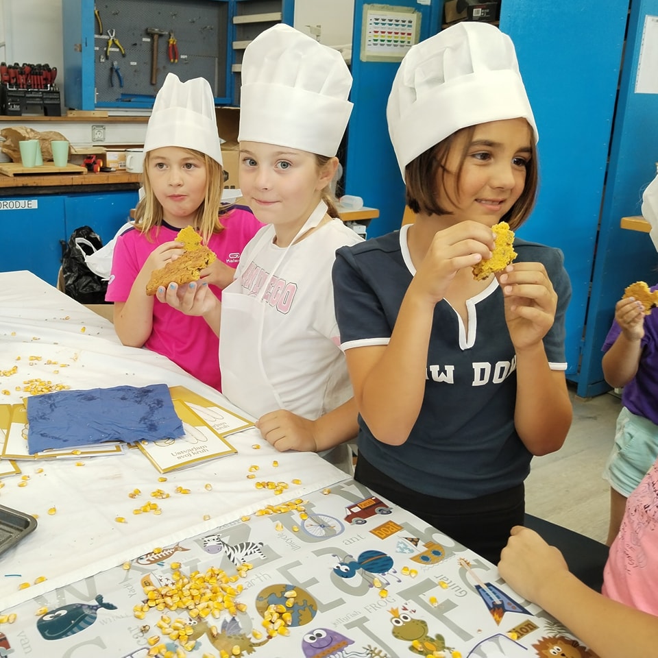 En dan so otroci posvetili raziskovanju pekarske in mlinarske dediščine. Obiskali so Jochmannov in Polžev mlin, kjer jim je gospod Ivan Božič predstavil delovanje vodnega mlina. Na koncu dneva so spekli tradicionalno Vipavsko pogačo po receptu gospe Marjetke Terbižan iz Ajdovščine.