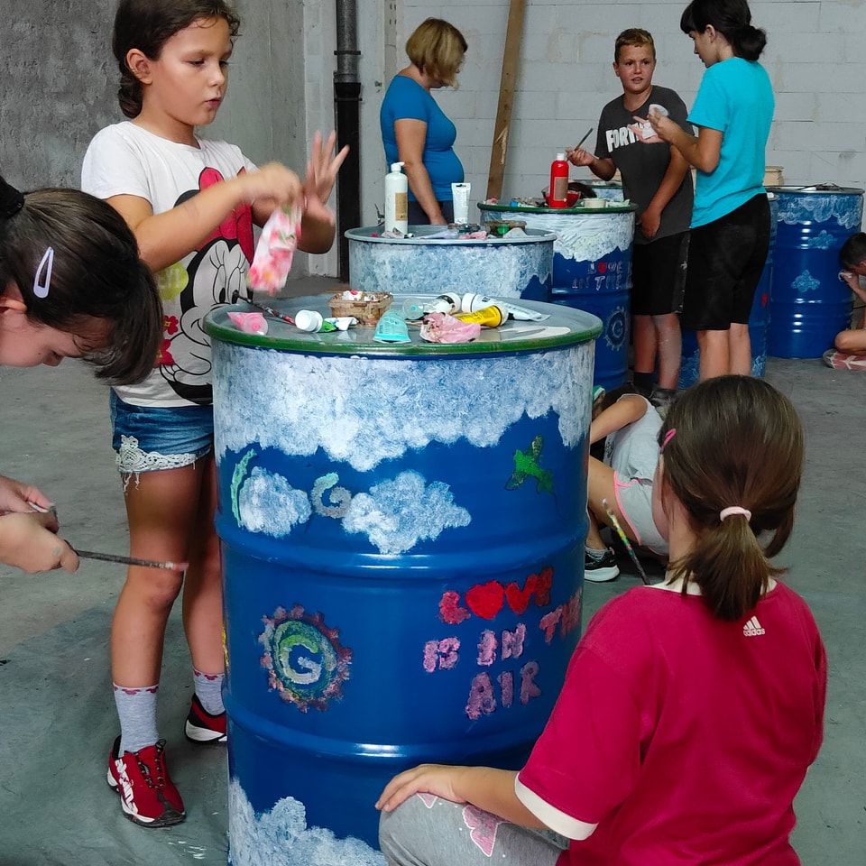 V tretjem terminu so otroci svojo kreativno energijo usmerili v barvanje sodov, ki so krasili 1. mednarodno modelarsko srečanje vojnih ptic. S pomočjo akrilnih barv so otroci ustvarili čudovite motive oblakov, letal in src, vse v znamenju dogodka “Lubejzn je u zraki / Love is in the Air”.